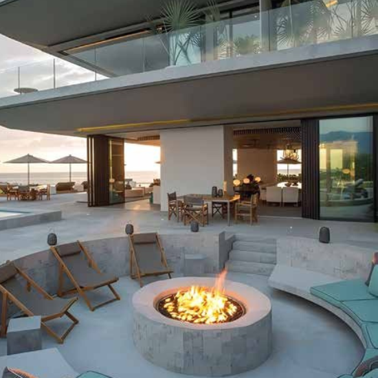 Custom firepits in stone, metal, or brick. Wood, gas, or propane — designed for elegance and warmth.